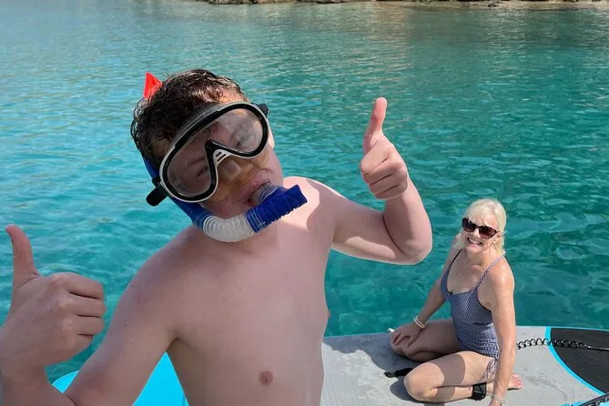 Ancoramos entre Romvi e Daskalio depois de uns 40 minutos (perdi a conta — o tempo fica meio confuso no barco). A água era tão transparente que dava para ver as pedrinhas no fundo. Nikos distribuiu máscaras para snorkel, e eu tentei ficar em pé na prancha de SUP por uns três minutos trêmulos antes de desistir. Ele riu e disse que a maioria das pessoas não aguenta muito mais na primeira vez. O melhor talvez tenha sido só ficar flutuando ali — silêncio, só o som distante dos grilos e risadas ecoando nas falésias.