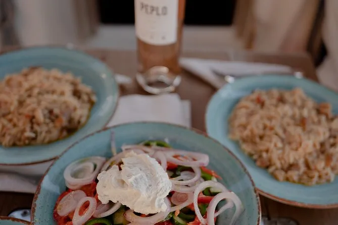 Sim, petiscos locais, frutas da estação ou sobremesa, vinhos gregos de Nemea, sucos e outras bebidas estão inclusos.
