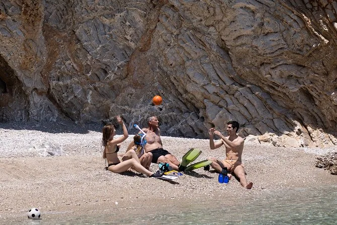 Você visitará praias isoladas acessíveis somente de barco perto das ilhas Romvi e Daskalio.