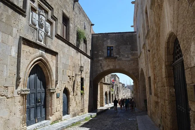 Seu dia inclui um passeio guiado por Rhodes Cidade Antiga com um especialista local que fala inglês — visitando a Praça Ippokratous, Bairro Judeu, Rua dos Cavaleiros, Palácio do Grão-Mestre, Museu Arqueológico e as fortificações, terminando perto do ponto de partida.