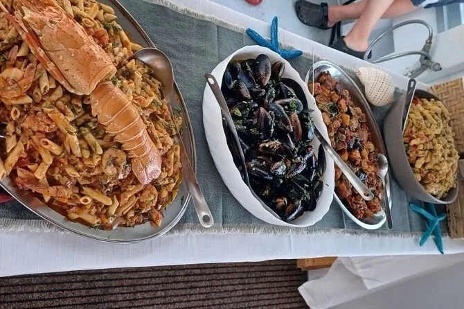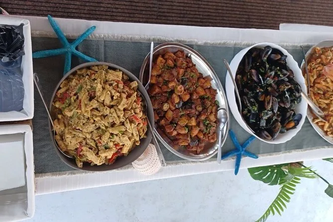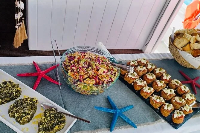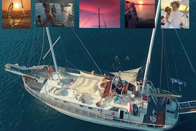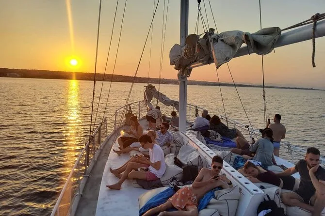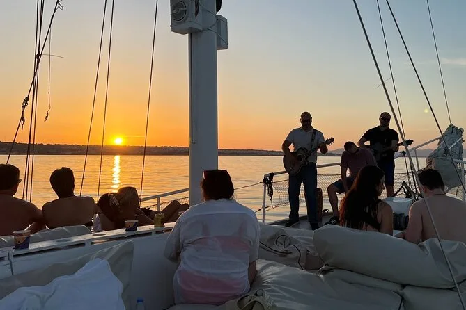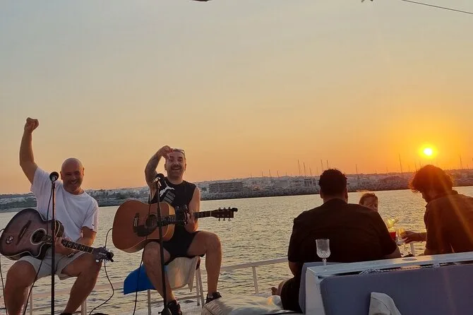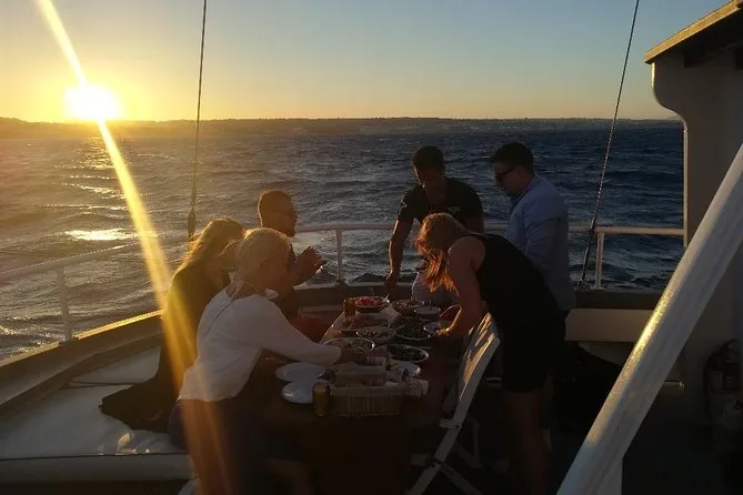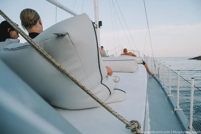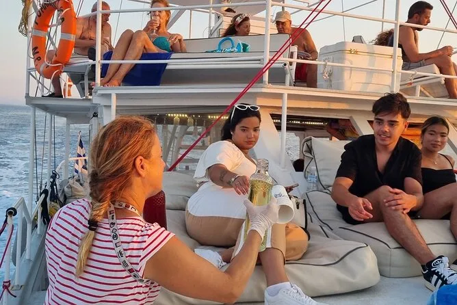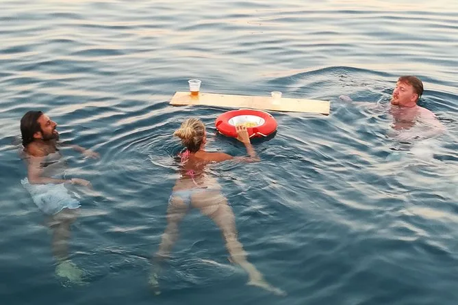Você vai embarcar em um kaiki tradicional em Rhodes para um passeio à beira da costa, com parada para nadar nas fontes de Kallithea antes de aproveitar um buffet gourmet e drinks do open bar. Música ao vivo embala o clima enquanto as muralhas medievais da cidade brilham no pôr do sol — uma mistura de risadas, sabores locais e aqueles momentos inesperados.