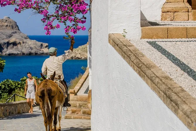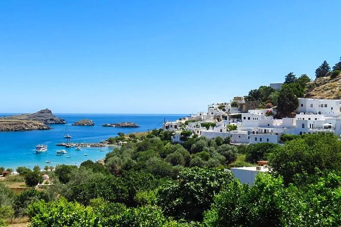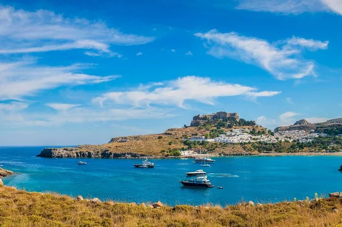 Você vai de barco de Rodes até a vila de Lindos, com tempo para explorar a antiga Acrópole ou relaxar nas praias douradas antes de voltar com paradas para nadar nas baías de Tsambika e Anthony Quinn. Prepare-se para o cheiro do mar, conversas locais e momentos de calma entre as aventuras — além de várias chances para flutuar ou passear no seu ritmo.