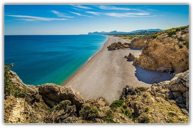 O tour para na Praia de Afandou (Grutas de Traganou), Baía de Ladiko e Baía de Antony Quinn.