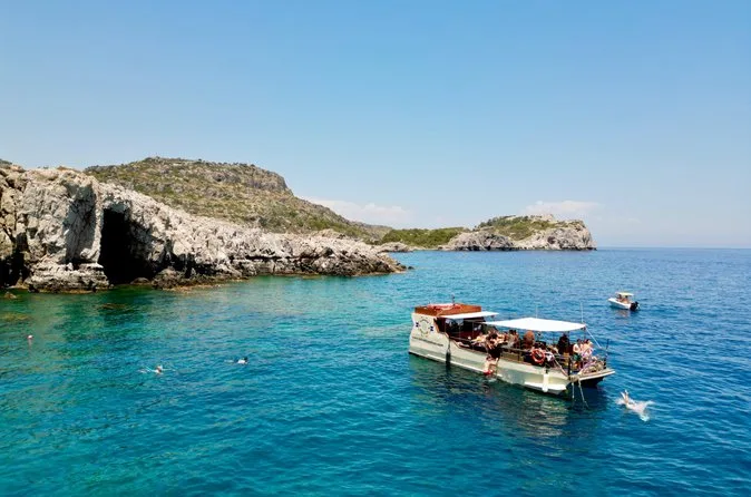 Você vai navegar entre as baías mais famosas de Rodes — Grutas de Traganou, Baía de Ladiko e Baía de Antony Quinn — nadando ou fazendo snorkel à vontade. Aproveite o bar aberto com bebidas geladas, experimente petiscos locais como as barrinhas de mel melekouni, e deixe seu guia cuidar de tudo, do transfer ao compartilhamento de histórias sobre cada lugar. Prepare-se para sair com a pele dourada e uma nova lembrança inesquecível de nado.