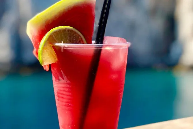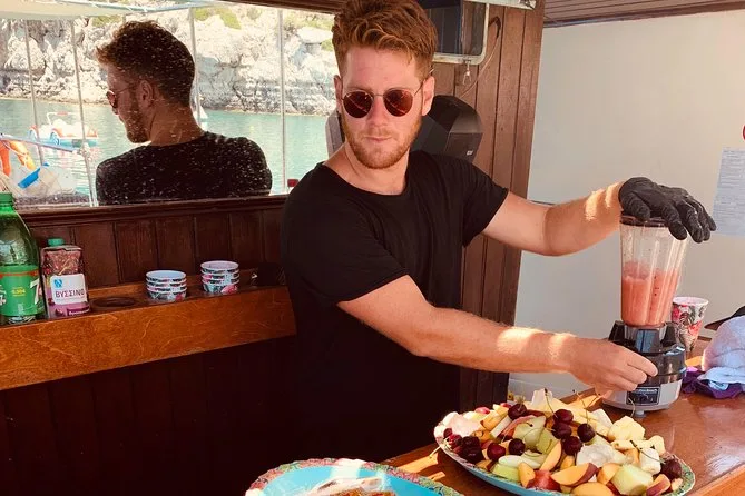 Seu dia inclui transfer do hotel em Faliraki (se combinado antes), todas as bebidas — cerveja, vinho, refrigerantes e o coquetel fresco do dia — além de muitos petiscos locais como as tradicionais barrinhas de mel melekouni e frutas. Equipamento para snorkel e noodles de piscina estão prontos para cada parada de nado em três baías diferentes, antes de voltar para a praia com a pele aquecida pelo sol e o sorriso no rosto.