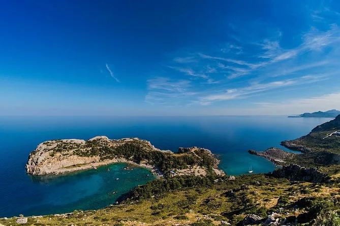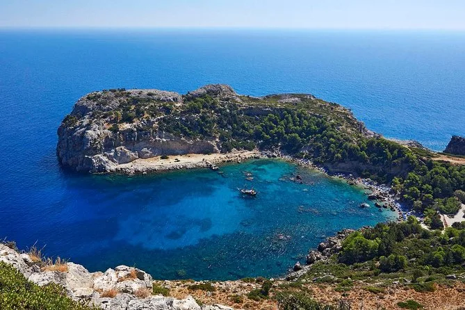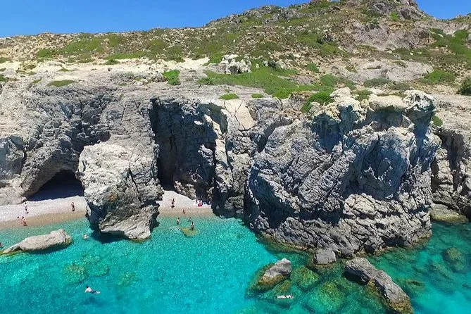 O passeio visita as baías Anthony Quinn, Ladiko e Traganou.