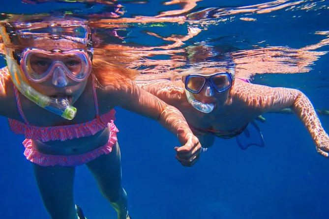 Seu dia inclui refrigerantes e água mineral durante todo o passeio, além de vinho ou cerveja para quem quiser; petiscos frios e frutas frescas são servidos entre as paradas para banho. O equipamento de snorkel está disponível para quem quiser usar antes de voltar para Rodes no final do dia.