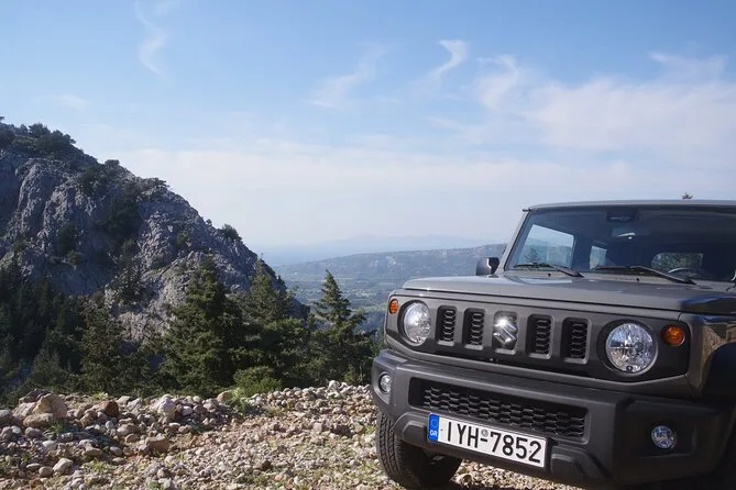 O dia inclui pickup no seu hotel ou casa de temporada no norte de Rodes, um Suzuki Jimny 4x4 com ar-condicionado para você dirigir (com seguro de responsabilidade civil), paradas guiadas em mirantes e vilas tradicionais como Archipoli para degustar mel caseiro e outras delícias — além de tempo para um almoço grego opcional antes de voltar relaxado, mas provavelmente com um pouco de poeira.