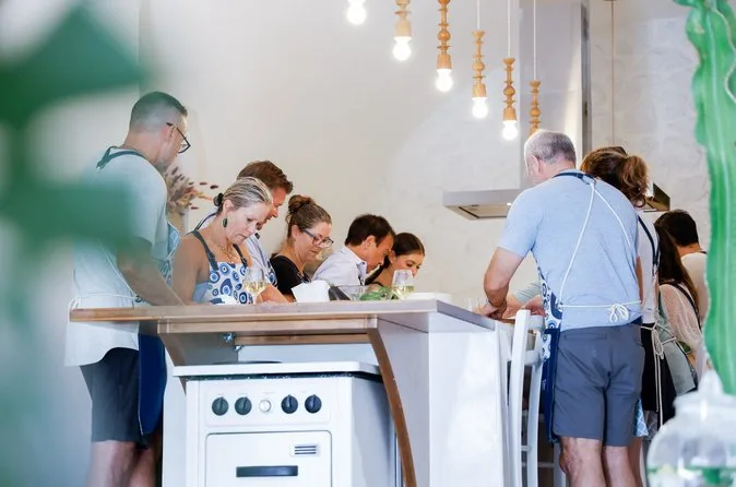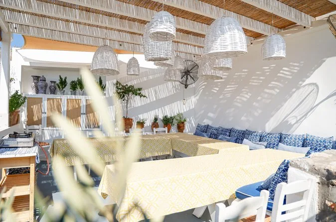 Você vai entrar numa cozinha dentro de uma casa de gruta em Santorini para uma aula prática de culinária grega com guias locais, e depois compartilhar seu prato numa varanda ensolarada com vinho e boas risadas. Prepare-se para sabores frescos, histórias por trás de cada receita e um livro para levar pra casa — além de sobremesa e café forte, enquanto aproveita a verdadeira hospitalidade da ilha.