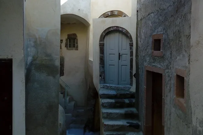 Depois, exploramos as vielas apertadas de Emporio, com seus tons desbotados de azul e amarelo, até achar o castelo veneziano escondido, como se estivesse se protegendo do tempo. Nosso guia nos serviu vinsanto local numa antiga adega canava; tinha gosto de uvas secas ao sol, poeira e algo mais que não sei explicar, mas ficou na memória. Quando chegamos a Oia para o pôr do sol, o grupo ficou em silêncio. O céu dourado atrás das casas de capitães e cavernas — todo mundo fala dos pores do sol em Santorini, mas estar dentro daquele castelo antigo enquanto tudo brilhava foi diferente. Difícil explicar.