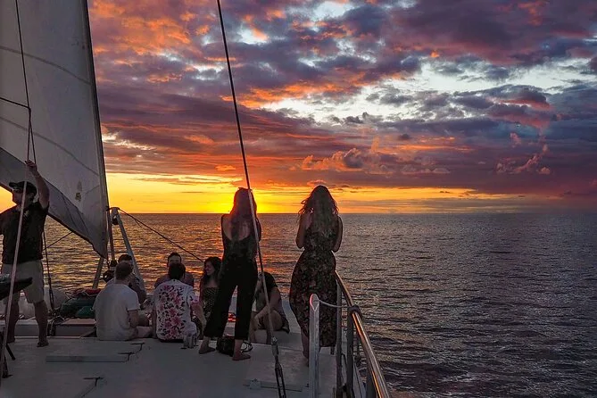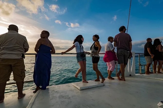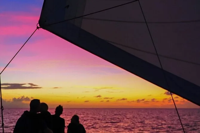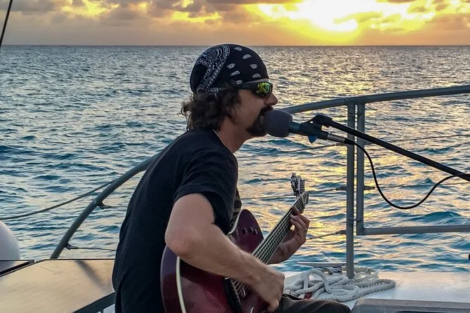 Sua noite inclui um cruzeiro de duas horas em catamarã saindo do píer de Frederiksted, com música ao vivo de artistas locais durante todo o trajeto, rum punch à vontade feito com rum Cruzan (para maiores de 18 anos), além de suco de frutas ou água, enquanto a equipe simpática conta histórias e você observa a vida selvagem perto de Sandy Point antes de voltar ao anoitecer.