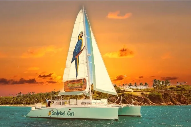 Seu passeio inclui embarque no Margaritaville Resort em St Thomas, além de um café da manhã leve ao embarcar. Todo o equipamento de snorkel está disponível para os dois pontos de parada; refrigerante, cerveja, vinho e destilados são servidos à vontade durante o dia. Há petiscos entre os mergulhos e um almoço fresquinho servido no convés antes do retorno à tarde.