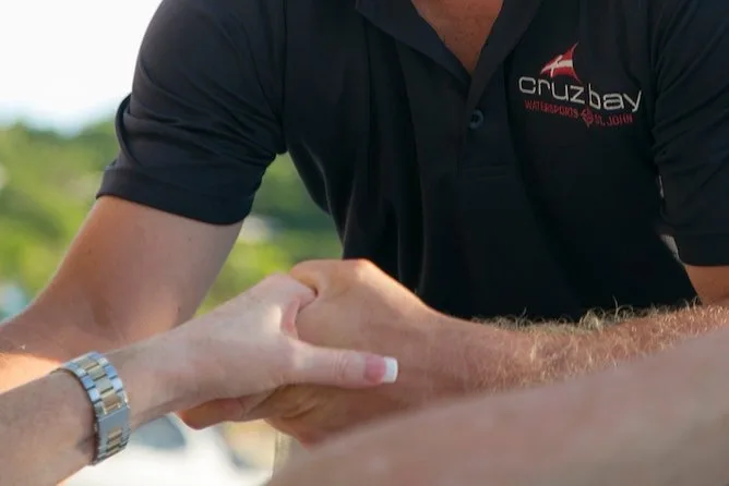 A duração exata não é informada, mas o retorno a Cruz Bay é antes do jantar.