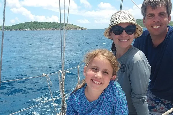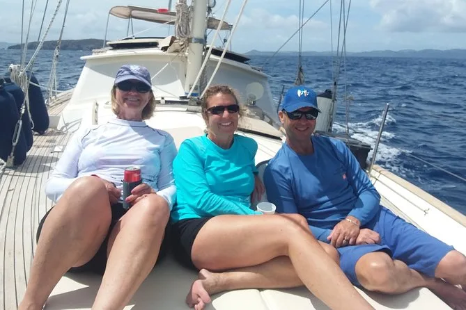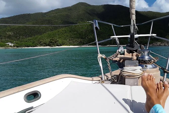 Você vai navegar de St Thomas com poucos viajantes, parando em Caneel Bay ou outro ponto escondido para snorkel com peixes tropicais. O Capitão Rob e a Deb garantem um clima tranquilo — bebidas e petiscos na mão, histórias compartilhadas no convés. Com no máximo seis convidados e todo o equipamento incluso, você vai se sentir parte das ilhas por um dia.