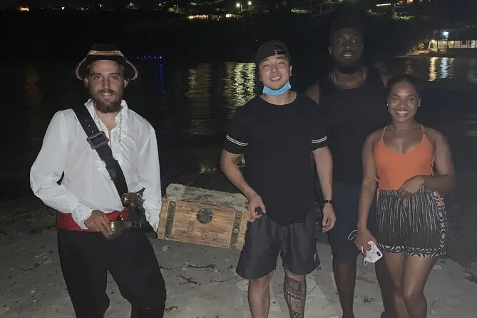 Sua noite inclui retirada de chapéus e equipamentos de pirata no museu do Castelo de Bluebeard antes do pôr do sol; caiaque duplo guiado pelos manguezais de St. Thomas; uso do kit de aventura com ferramentas e mapa; entrada em pontos históricos; cerveja artesanal local ou bebida similar mais outra bebida em restaurante à beira da praia; água engarrafada; petiscos durante o percurso; e um aperitivo para fechar a noite, antes de voltar cansado, mas feliz.
