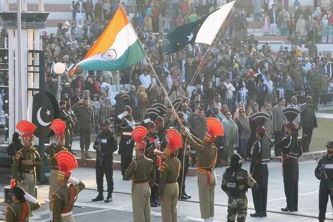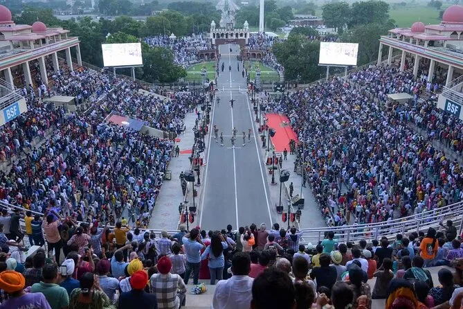 A viagem até a Fronteira de Wagah levou cerca de duas horas — o trânsito fica pesado depois do almoço, então leve paciência (e talvez uns amendoins torrados de uma barraca na estrada). Em Wagah, a energia é contagiante: bandeiras tremulando, famílias cantando Bollywood alto nas caixas de som. O desfile é puro espetáculo — soldados marchando com passos firmes, a multidão vibrando de um lado para o outro naquela linha fina que separa Índia e Paquistão. É barulhento, cheio de orgulho e, sinceramente, uma experiência única no mundo.
