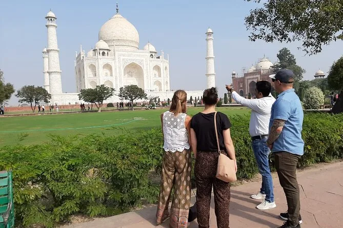 Seu dia inclui transporte privativo com ar-condicionado e motorista, saída cedo do hotel em Delhi ou cidades próximas; ingressos com acesso sem fila (se selecionado); visitas guiadas em todos os pontos; água mineral; almoço em hotel 5 estrelas; além de pedágios, estacionamento e impostos pagos, retornando após o pôr do sol.