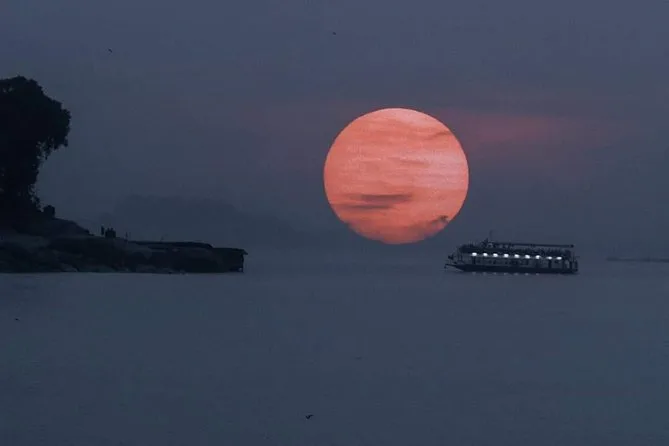 O Museu do Estado de Assam foi mais tranquilo do que eu esperava. O chão de pedra fresca, vitrines cheias de máscaras tribais e manuscritos minúsculos escritos em casca de árvore — tão frágeis que dava até para prender a respiração ao olhar. No fim da tarde, estávamos de volta ao ar livre, com o sol brilhando sobre o Brahmaputra. O cruzeiro no rio não era luxuoso — cadeiras de plástico, crianças correndo — mas quando o céu ficou laranja e os barcos passaram devagar, todo mundo ficou em silêncio por um instante. Tem algo naquele rio ao pôr do sol que faz a gente esquecer o celular por um momento.