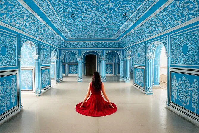 O tour inclui Hawa Mahal (Palácio dos Ventos), Forte Amber e Palácio, observatório Jantar Mantar, City Palace (incluindo Mubarak Mahal), Jal Mahal (Palácio da Água), stepwell Panna Meena Ka Kund e os cenotáfios Gaitor Ki Chhatriyan.