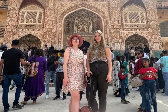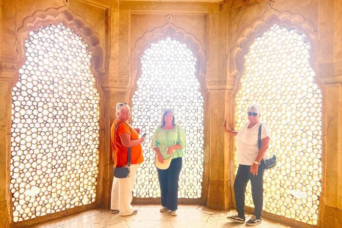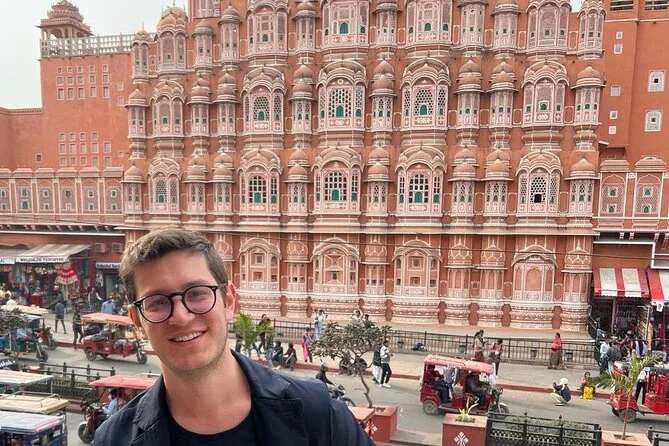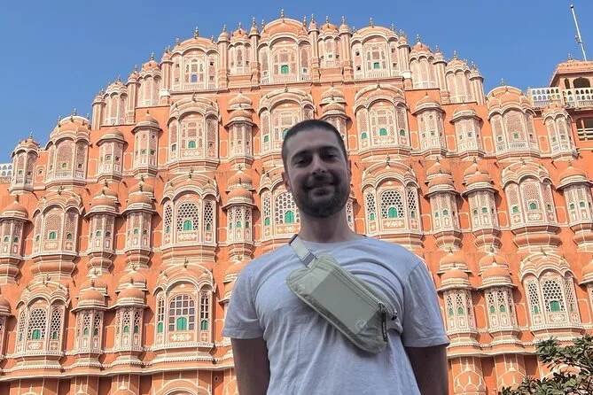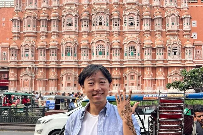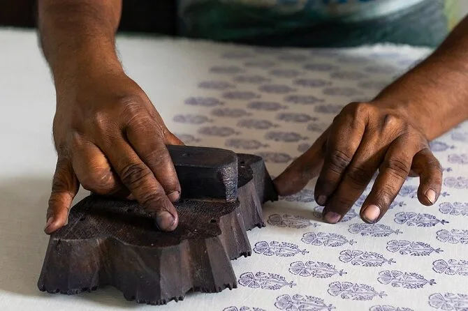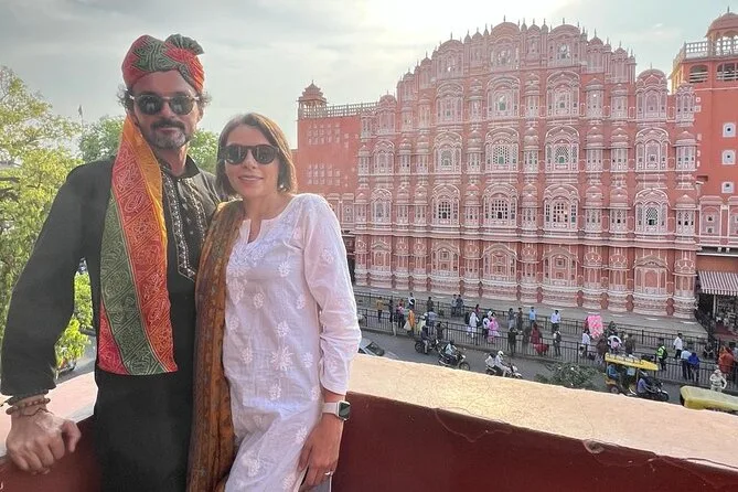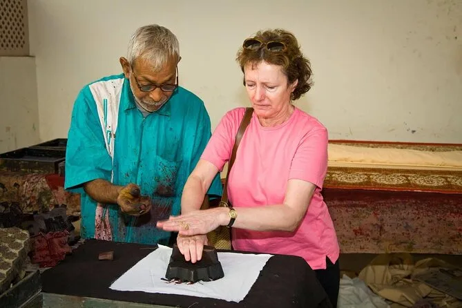 Seu dia inclui transporte privativo do hotel ou qualquer ponto em Jaipur em veículo com ar-condicionado, com motorista e guia que falam inglês; água mineral durante todo o passeio; chá masala ou preto ou café no Wind View Cafe; visitas aos principais pontos como Hawa Mahal (externo), Jantar Mantar, City Palace, Jal Mahal; além de uma oficina prática de estamparia manual antes do retorno para onde você preferir na cidade.