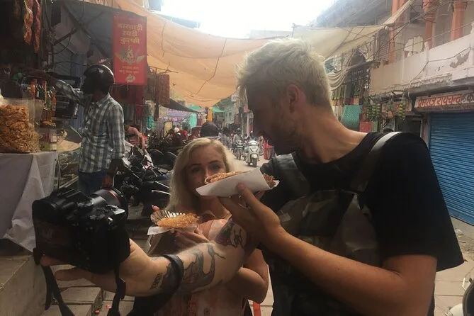 Seu dia inclui transporte privado com pickup e drop-off no hotel, todas as taxas e entradas pagas antecipadamente, água mineral para se hidratar no calor, além de uma parada para chá ou café com samosas fresquinhas de um vendedor local antes do retorno ao hotel.