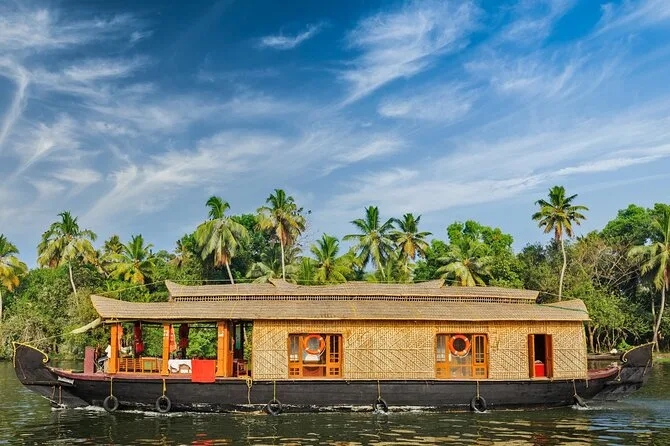 Seu roteiro inclui transfers privativos do aeroporto de Kochi pelas colinas de chá até Alleppey e retorno; hospedagem em hotéis 3 estrelas selecionados em Munnar e Kochi; cruzeiro noturno com almoço e jantar a bordo de um houseboat tradicional de Kerala; café da manhã diário; passeios com guia local; todas as entradas inclusas; e traslado final para o aeroporto.