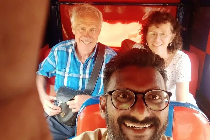 Você vai passear de tuk-tuk privado por Kochi com um guia local, parando nas redes chinesas, Praia de Fort Kochi, Palácio Mattancherry e Sinagoga Paradesi. Prepare-se para encontros próximos com moradores, cores vibrantes e aromas de especiarias, com retirada direto no navio de cruzeiro — tudo em uma tarde animada.