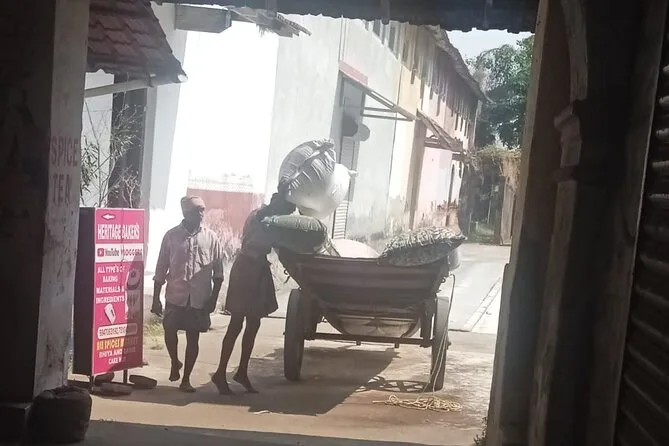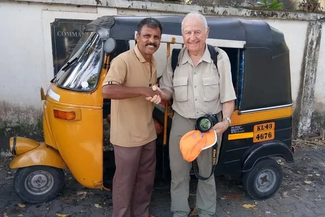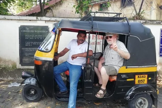 Seu dia inclui pickup prático no hotel de tuk tuk e taxas de estacionamento pagas durante o trajeto; é só levar você mesmo (e talvez aquela vontade de tomar água de coco fresca), porque o resto fica por conta do seu guia local, que te deixa de volta no hotel ou onde preferir em Kochi.