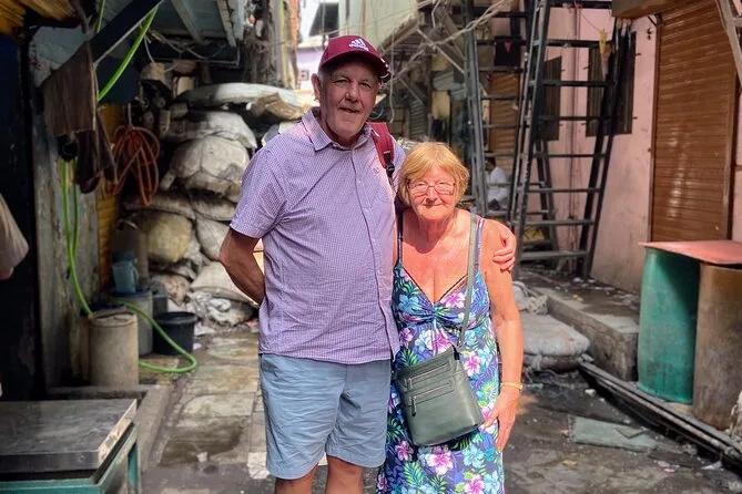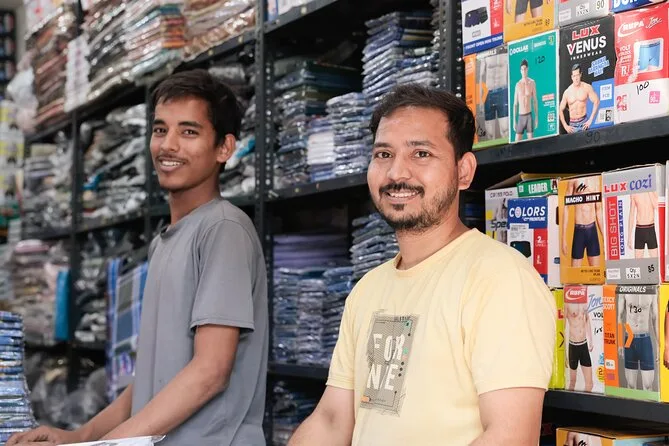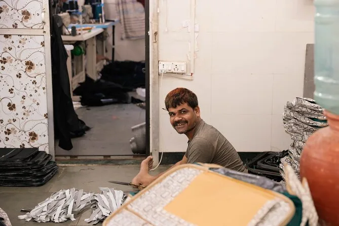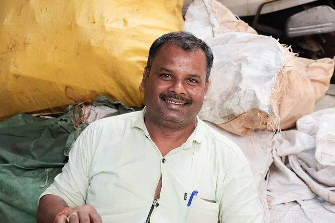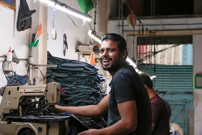 Fiquei pensando em quanta vida cabe nesses espaços apertados — conversas rolando sobre pilhas de sapatos ou barras de sabão empilhadas. Não era nada do que eu imaginava; ali tem orgulho e muita criatividade. Paramos para tomar água (que já está inclusa no tour — essencial), e seguimos enquanto Sunil respondia nossas perguntas sem esconder nada. A caminhada não é longa nem cansativa, mas tem muita coisa para absorver. Até hoje, dias depois, lembro dos sorrisos rápidos e da sensação de ter sido acolhido por algumas horas.