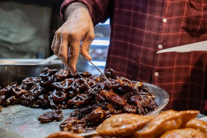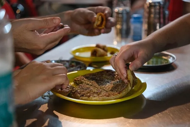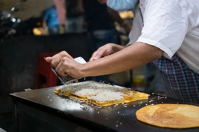 Sua noite inclui todo o transporte entre os pontos de táxi ou transporte público conforme necessário, degustações ilimitadas de comidas de rua, desde petiscos salgados até doces e bebidas ao longo do caminho, além de histórias e dicas de um guia local que fala inglês e conhece todos os atalhos pelos bairros mais movimentados de Mumbai.