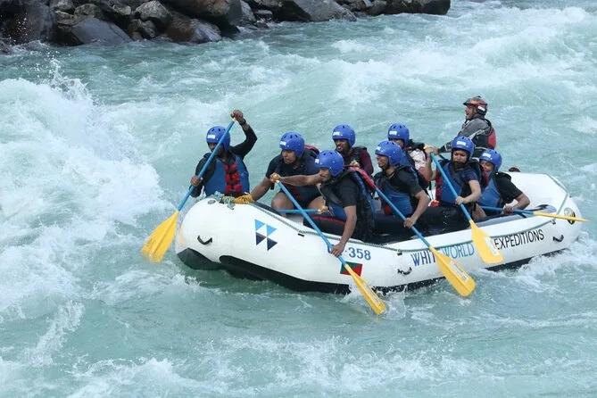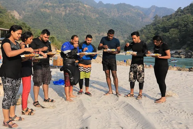 Seu dia inclui transporte do escritório da White World Expeditions até Kaudiyala e retorno após o fim na NIM Beach, todas as taxas de entrada, guias profissionais com apoio de caiaque de segurança, equipamento completo de rafting (com bolsa impermeável), lanches durante as pausas à beira do rio, oportunidades para body surfing se quiser, jogos divertidos no caminho e um almoço simples no final antes de voltar para casa.