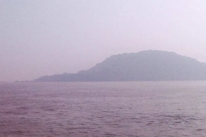 Depois de explorar, pegamos o ferry de volta justo quando o sol começava a se pôr atrás do horizonte de Mumbai. A cidade parecia enevoada vista do mar — uma forma perfeita de encerrar o passeio antes de voltar para o hotel e descansar.