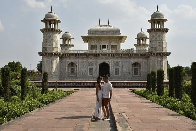 Você visitará o Taj Mahal ao nascer do sol no segundo dia, quando o clima está mais fresco e a luz mais suave.