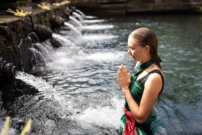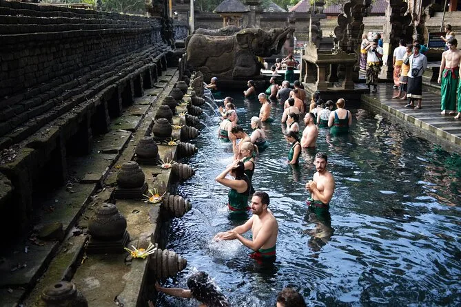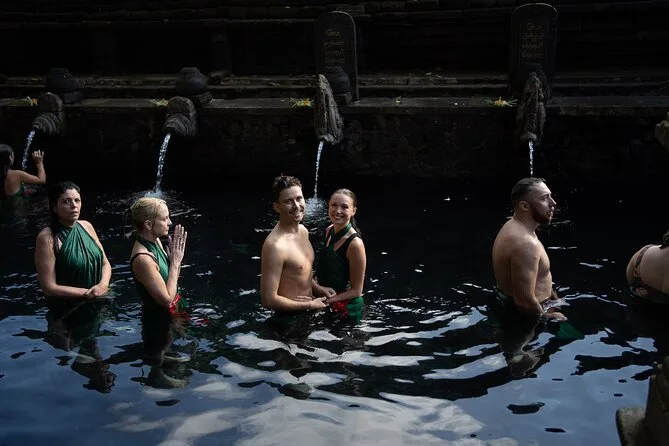 A próxima parada foi Tirta Empul. O ar estava mais denso — incenso e frangipani por todo lado. Nosso guia explicou sobre as piscinas de purificação e como pessoas de toda Bali vêm para as cerimônias. Confesso que fiquei meio nervoso ao entrar na água junto com todo mundo (turistas e famílias balinesas lado a lado), mas foi surpreendentemente relaxante. A Li riu quando tentei falar “terima kasih” direito — acho que arruinei a palavra. Tem algo especial em dividir esse momento com desconhecidos que fica guardado na memória, muito mais que qualquer foto.