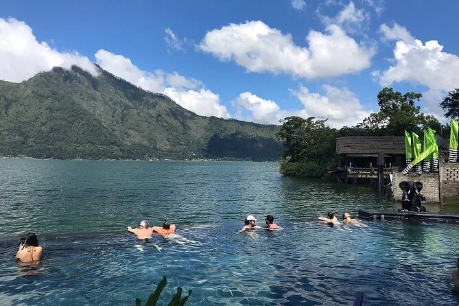 Recomenda-se levar traje de banho para aproveitar as fontes naturais de Batur; toalhas podem ser fornecidas no local.