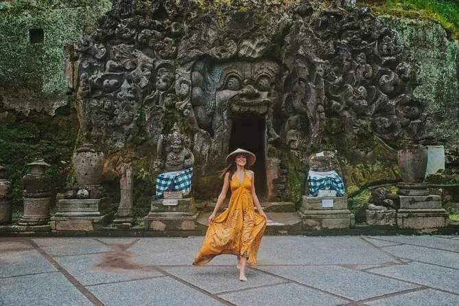 O passeio dura o dia inteiro, visitando as principais atrações de Ubud como templos, terraços de arroz, cachoeira e vilas de arte.