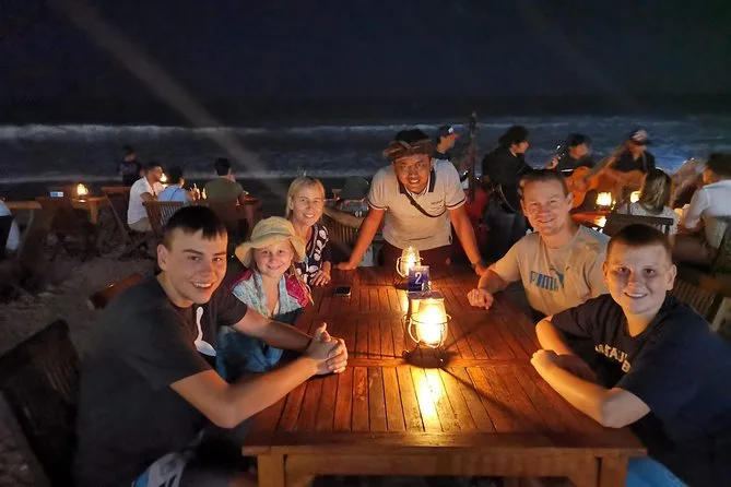 O jantar está incluído; você vai aproveitar frutos do mar fresquinhos na praia de Jimbaran.