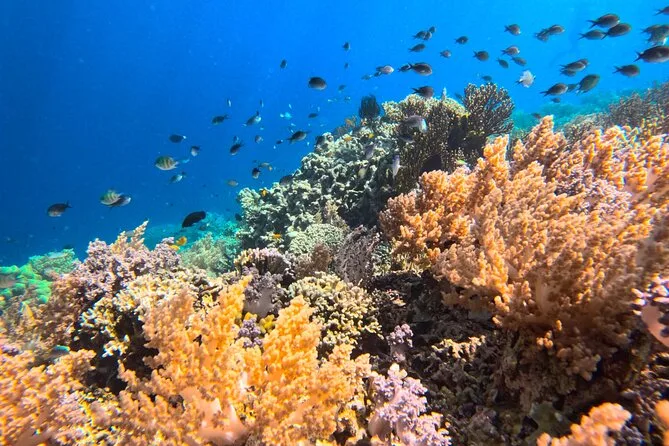 Seu dia inclui transporte de barco ida e volta desde o porto de Banyuwedang, traslado do hotel para quem estiver hospedado nas áreas de Pemuteran ou Menjangan, entrada na Ilha Menjangan, uso de equipamento de snorkel e toalhas de qualidade, acompanhamento de um guia local experiente durante as duas sessões de mergulho, água mineral à vontade e um almoço simples tipo piquenique na praia antes do retorno à tarde.