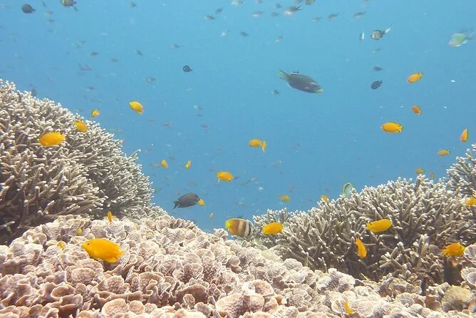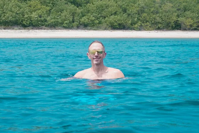 As águas são muito claras e calmas; você pode alimentar os peixes coloridos com pão direto da mão usando a garrafa.