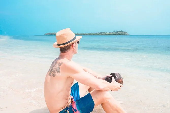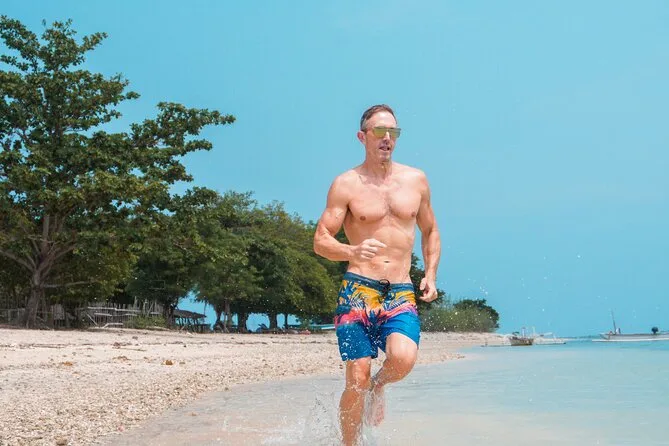 Seu dia inclui traslado do hotel em qualquer lugar do sudoeste de Lombok, transporte privado em barco motorizado entre as cinco Gilis, uso do equipamento de snorkel (e o truque divertido do pão na garrafa), bastante água mineral e refrigerante durante o trajeto, além de um almoço com frutos do mar grelhados, arroz, frutas e água de coco fresca antes de retornar no fim da tarde.