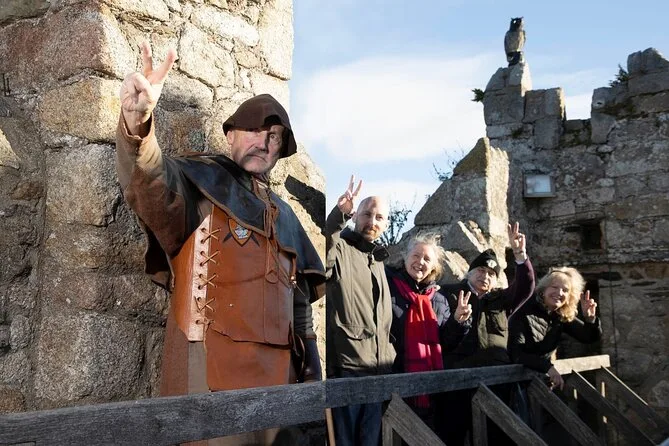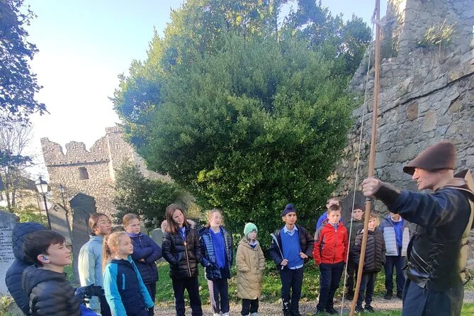 Sua visita inclui entrada no Dalkey Castle & Heritage Centre com acesso a todas as exposições interativas — atores fantasiados trazem habilidades medievais à vida enquanto guias locais compartilham histórias o tempo todo. Você também vai explorar o cemitério de St Begnet, experimentar atividades práticas como arco e flecha ou posar para selfies nas celas, se quiser. As telas interativas estão disponíveis em vários idiomas para mergulhar ainda mais na história ou literatura durante o passeio.