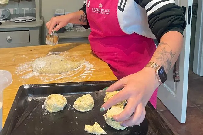 Seu dia inclui todos os ingredientes e utensílios para preparar scones e pão integral na cozinha ou café da Kate, perto de Galway. Você também recebe receitas impressas (e uma caneta para anotar), além de chá ou café para acompanhar suas delícias feitas na hora — só precisa trazer a curiosidade (e talvez a fome).