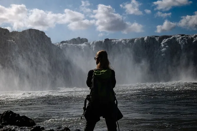 Você vai sair de Akureyri pela costa do Eyjafjordur para visitar um museu de casas de turfa, sentir o spray da cachoeira Goðafoss no rosto e terminar relaxando nas piscinas termais da Lagoa da Floresta, com toalha incluída. Prepare-se para histórias sinceras do guia local e momentos de paz que ficam na memória.