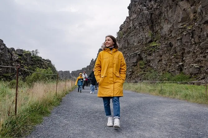 Seu dia inclui transporte guiado saindo de Reykjavik com busca e retorno, taxas de entrada para todos os principais pontos como Gullfoss e cratera Kerid (nas saídas elegíveis) e bastante tempo em cada parada para explorar ou almoçar perto de Geysir antes de voltar à noite.