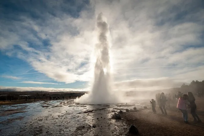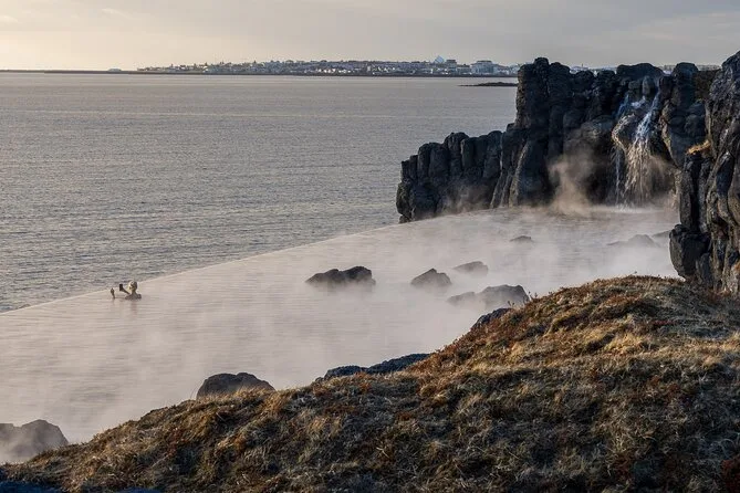 Você vai caminhar entre continentes em Thingvellir, ver cavalos islandeses trotando na fazenda Friðheimar, provar tomates direto da planta e sentir a névoa da cachoeira Gullfoss no rosto antes de relaxar nas águas geotermais da Sky Lagoon — tudo com guia local e ingressos inclusos. Prepare-se para calor (às vezes literal), risadas e momentos que ficam na memória.