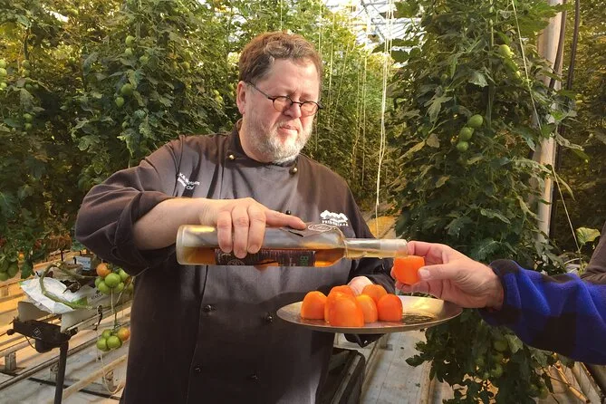 Você vai provar tomates (geralmente em forma de sopa com pão) na fazenda Friðheimar; outras refeições não estão especificadas.
