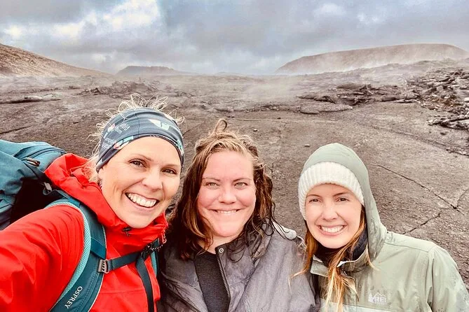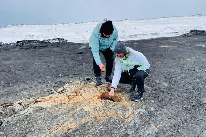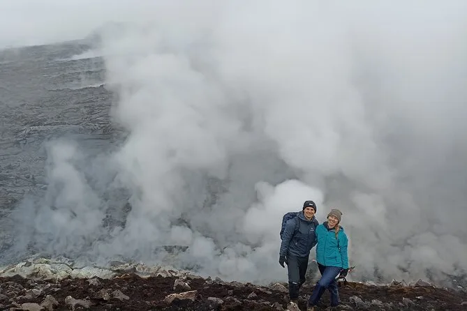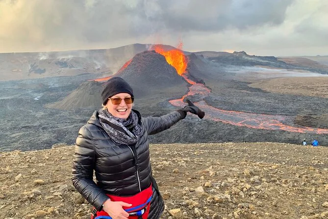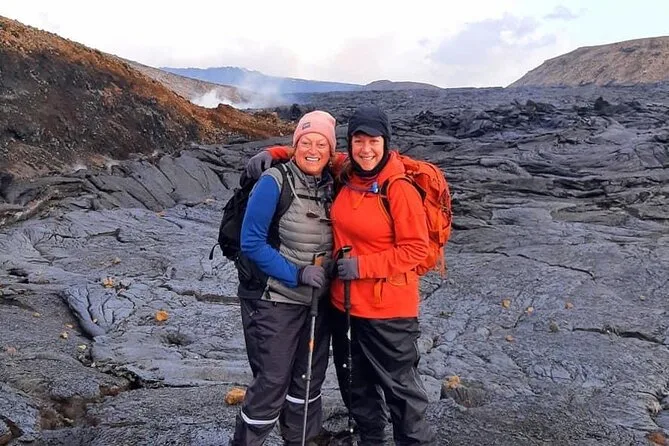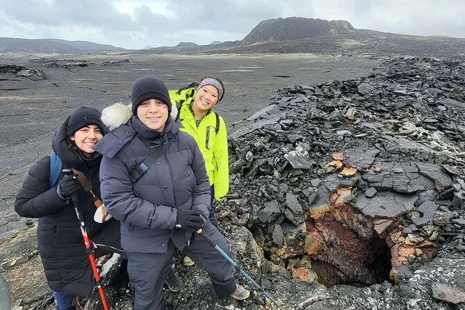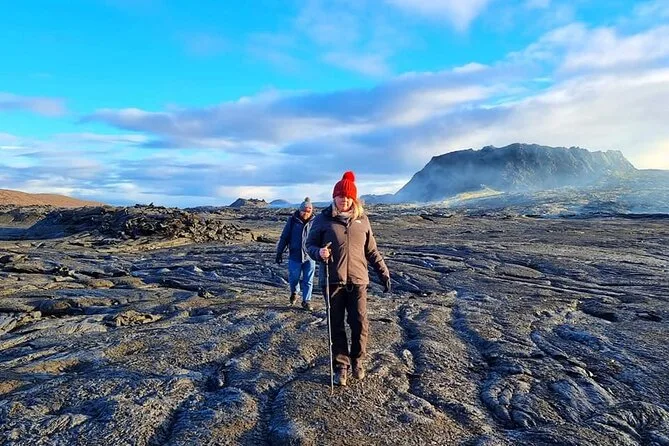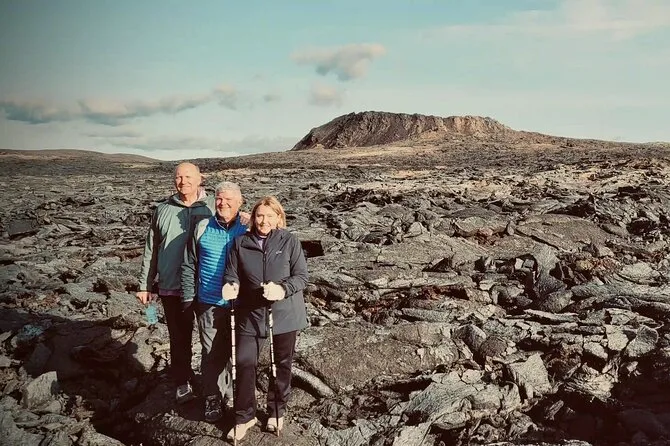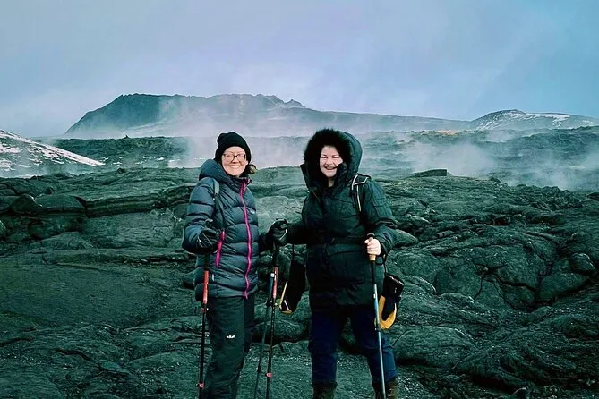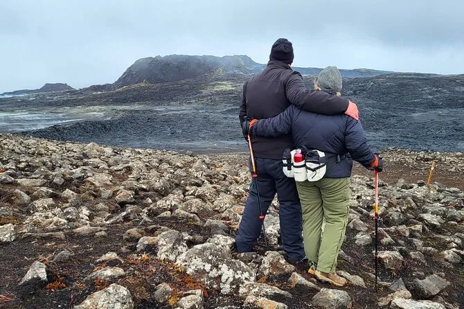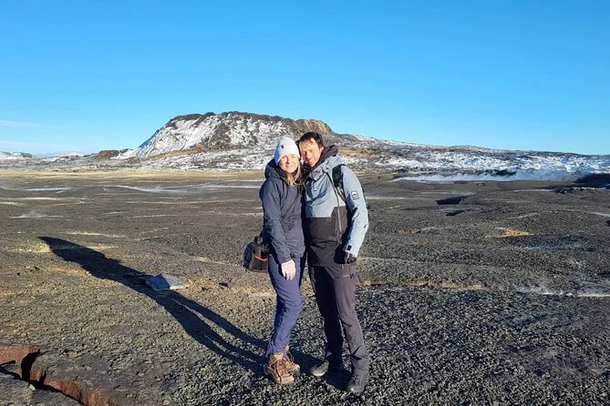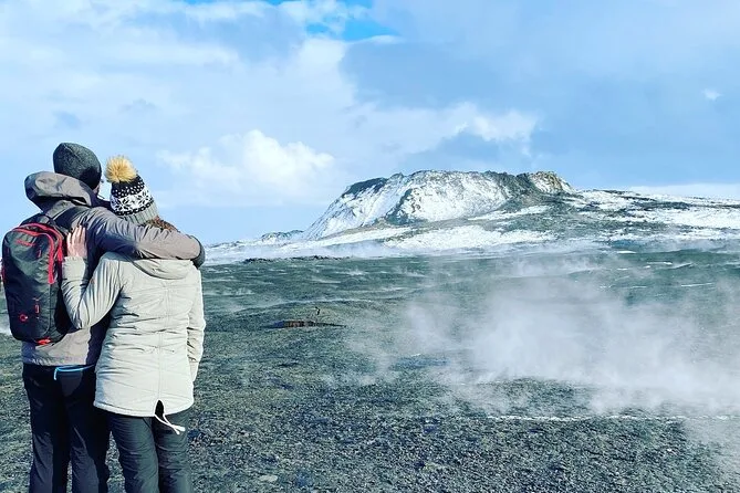 Seu dia inclui guia local certificado com experiência em erupções, uso de bastões de caminhada (e grampos ou lanternas se for inverno), traslado de Reykjavík se escolhido na reserva — ou instruções claras para quem for se encontrar em Grindavík — e paradas extras na área geotermal de Seltún e no lago Kleifarvatn no retorno para Reykjavík após a aventura no vulcão.