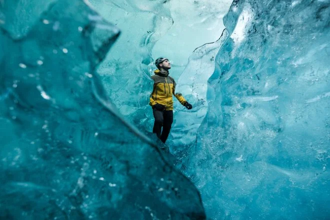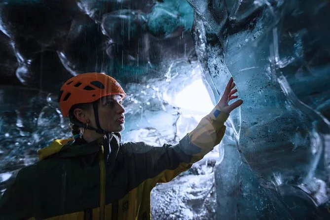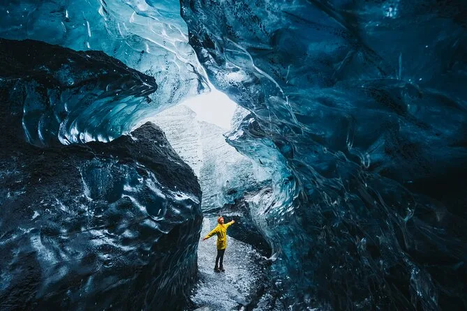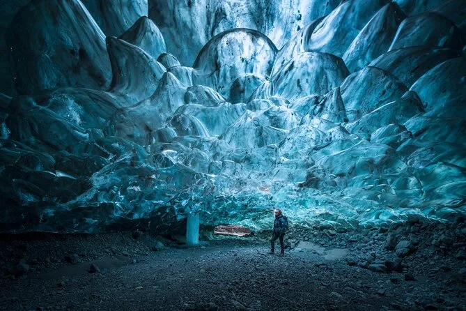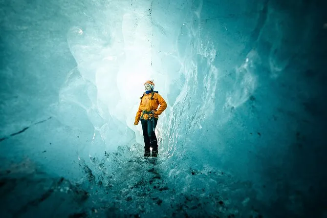 Seu dia começa com o encontro no estacionamento principal da Lagoa Glaciar Jökulsárlón, seguido de um passeio em veículo 4x4 adaptado até o glaciar Vatnajökull com um guia local profissional. Todo o equipamento de segurança — grampos e capacete — é fornecido para explorar as grutas de gelo azul ou outras formações. Você fará parte de um grupo pequeno, apoiando uma empresa local em uma aventura com pegada de carbono neutra, antes de voltar ao ponto inicial.