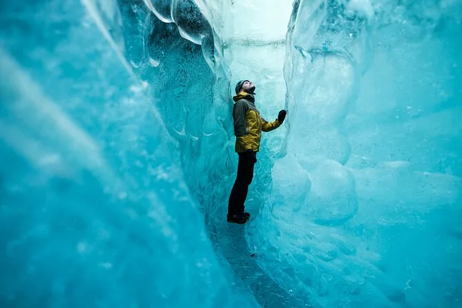 Você vai sair de 4x4 da Lagoa Glaciar Jökulsárlón com um guia local, calçar grampos e capacete, e pisar direto no gelo azul do Vatnajökull. Explore grutas de gelo que mudam o tempo todo — às vezes mais túnel — enquanto aprende os segredos do glaciar. Prepare-se para risadas, bochechas vermelhas e momentos de silêncio que vão ficar na memória muito depois de sair da Islândia.