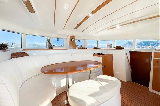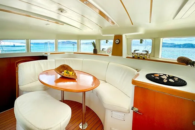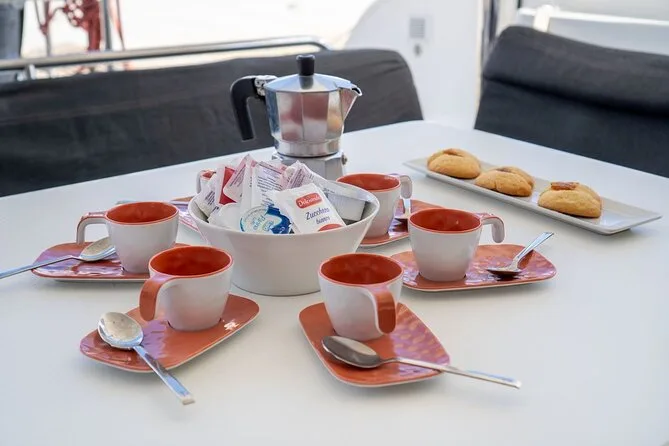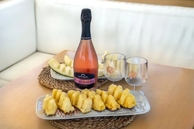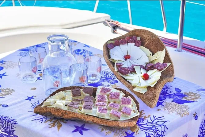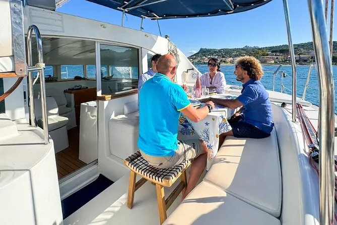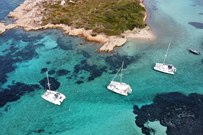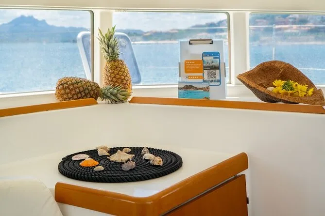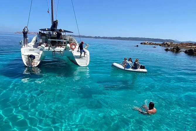 Seu dia inclui saída do porto de Cannigione com todas as taxas de navegação; paradas em várias ilhas do Arquipélago de Maddalena; uso do equipamento de snorkel; aperitivo com especialidades sardas; almoço fresco de massa com frutos do mar (opções vegetarianas ou sem peixe disponíveis se reservadas com antecedência); vinho branco Vermentino à vontade, cerveja, refrigerantes e água mineral; frutas frescas; doces; café ou chá; e um copo do tradicional licor de murta antes do retorno no fim da tarde.